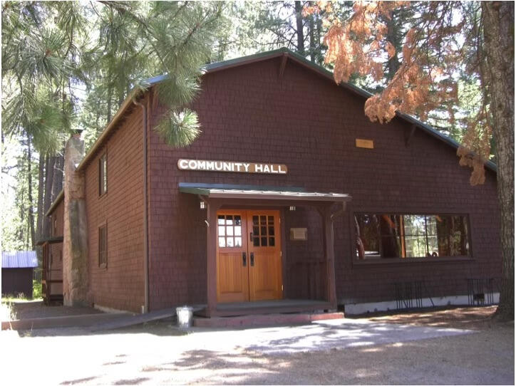 The Community Hall was constructed by the community in 1948 (pictured below). In 2004, volunteers from the Camp Sherman community completed a major renovation of the Camp Sherman community hall. The project included excavations beneath the building to replace floor beams and sill plates, installation of a new heating system, and restoration and refinishing of the floor in the main hall. The fireplace and chimney were also repaired, and new front doors were installed. The projected was financed by contributions from the local community and a grant from the State Historic Preservation Office and a grant from the CSHS.
