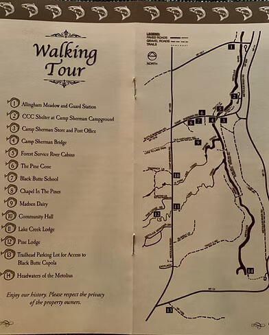 This guide is designed as a walking tour of historical places in Camp Sherman with a picture to help you identify each location and a summary of the history of each site.Suggested Donation: $5.00
