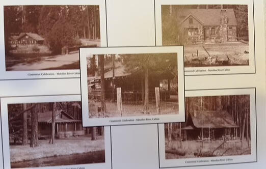 Five pictures of Metolius River cabins featured in the Centennial Celebration Booklet.